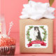 On these Holiday correspondence stickers, a portrait of a Bernese Mountain Dog is surrounded by a red berry holly wreath. At the bottom is a red banner with your custom Christmas greeting, and your signature is in green beneath it.