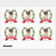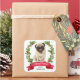 On these Holiday correspondence stickers, a portrait of an adorable Pug dog is surrounded by a red berry holly wreath. At the bottom is a red banner with your custom Christmas greeting, and your signature is in green beneath it.