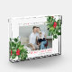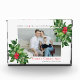 Watercolor Holly Berries and Holly Leaves photo frame with an elegant Merry Christmas and Happy New Year wish.