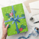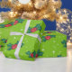 Holly Berries with Snow and Stars on Bright Green Wrapping Paper