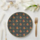 This paper plate features a a holly berry pattern on a black background with a gold border.