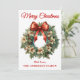 Holly Berry Christmas Wreath with Red Bow Holiday Card