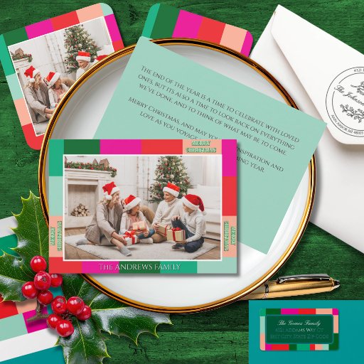 This delightfully minimalist holly design is perfect for your holiday and Christmas Mailing. The design is clean and elegant, and allows you to create your own round return address stamp. You can personalize in the personalize area, or if you need more advanced adjustments, enter the "edit design" tool where you may adjust size, curvature and font.