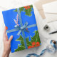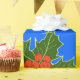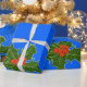 Holly (Ilex) Christmas Motif on Blue Background Wrapping Paper
