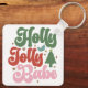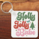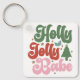 Holly Jolly Babe Retro Groovy Christmas Holidays Keychain