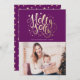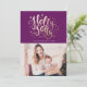 Éblouissez vos amis et votre famille cette saison de vacances en leur envoyant un beau carte photo de vacances! Le carte photo de vacances présente une typographie élégante, lettrée à la main avec les mots "Holly Jolly" et des étoiles dans un style imitation doré chatoyant contre un arrière - plan violet. L'arrière de l'établissement présente un joli design d'étoiles dorées et blanches. Personnalisez vos cartes de fin de année festifs en ajoutant votre photo préférée et votre texte personnalisé.