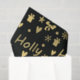 A Fun Black And Gold Holiday Tissue Paper Pattern Of Hearts And And Snowflakes And The Words Holly Jolly In Gold