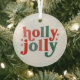 Holly Jolly - Retro Holiday Typography Glass Ornament