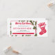 A clean, festive white and red design with a holly/ivy border and a detailed Christmas stocking graphic. Perfect for delivering a personalized "Gift or Event" to Romeo from Susan. Easily customizable for any holiday present or experience.