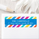 Custom holiday return address labels with a bright colorful watercolor stripe background to coordinate with our Holly Jolly collection. Personalize it with your family name and return address. Use the design tools to edit the text fonts and colors or add your own photos to create unique one of a kind holiday return address labels.