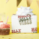Holly Jolly Vibes Retro 1960s Christmas Gift Wrapping Paper... Christmas gift wrap 1960s hippie style. Our patterned wrapping paper displays the text graphic "Holly Jolly Vibes" in a traditional 1960s era font and in retro 60s and 70s colours... terracotta, woodland green, and light sage.