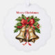 Holly Leaves & Berries Gold Bells Merry Christmas Ornament Card