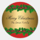 Faux Gold Christmas Holiday Sticker. Elegant Holly Leaves design.