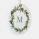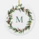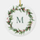 Holly Red Berry Monogrammed Wreath Christmas Ceramic Ornament