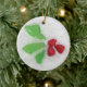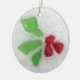 Three red milk-glass holly "berries" and 3 green "leaves" on real snow make this beautiful ceramic ornament a wonderful addition to your tree. Get one for yourself, and give one as a gift!