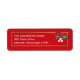 Étiquette rouge et or de l'adresse de retour avec une pointe de saint dans le coin.