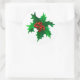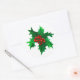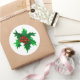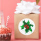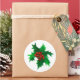 Sticker shown in the large round in white with a holly art print.
