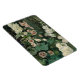 This design features a painting by the Spanish artist Marià Fortuny (1838–1874). It shows a flowering group of hollyhock plants in a floral garden. The flowers of the hollyhocks are pink and white; they stand out against the surrounding greenery of the plants' leaves and stems.