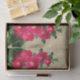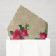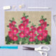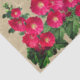 Tissue paper with image of pink hollyhocks against a beige background.