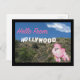 The Hollywood California Retro Pink Poodle Postcard features the famous Hollywood sign and a glamourous retro pink poodle in sunglasses. The front of the card reads "Hello From Hollywood"