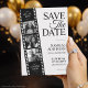 A timeless black and white Save the Date card featuring a cinematic film strip photo timeline and elegant Hollywood-inspired typography. Designed for any occasion, this versatile movie-style announcement is perfect for weddings, anniversaries, birthdays, graduations, retirements, and special celebrations. Fully customizable with names, date, photos, and event details.