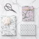 Hollywood Toile Coquette Pink & Green Wrapping Paper Sheets, White and green toil gift paper and watercolor bow gift paper.
