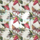 The pattern features red caladium and white orchid flowers, Sansevieria (snake plant) and large leaves and fern foliage.