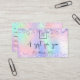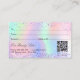 Un arrière - plan holographique branché aux couleurs unicorne et aux couleurs arc-en-ciel rose, violet, vert menthe. Décoré de confettis. Personnalisez et ajoutez votre logo d'entreprise, votre nom à l'avant Retour : Modèles pour votre nom, adresse, coordonnées et votre propre code QR sur votre site Web ou votre compte de médias sociaux. Parfait pour les femmes entrepreneurs, consultants, salons de beauté, propriétaires d'entreprises.