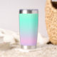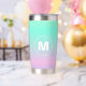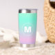Holographic Colours Ombre Gradient Monogram personalized thermal coffee glass featuring gradient background.