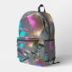 Holographic Glass Rainbow Backpack | Iridescent Cyan Magenta Gold Printed Backpack