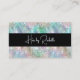 A business card with a faux holographic glitter and black background. The front has space for your name or your company name. The back has space for your contact information.