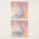 This girly and glamourous necklace display card is the perfect way to stylize your packaging and add your own personal flair and personality. It depicts chic, pretty, unique, and luxurious faux printed sparkly rainbow colour glitter drips on top of a holographic iridescent foil background. The typography is an elegant cursive script with a modern serif font to match. The colour scheme includes pink, peach, blue, purple, gold, and coral. On the back, it includes contact information that can be changed completely or personalized to your details. It's a professional, elegant, and stylish way to display your product with pride. (necklace lines are printed markers only, cutting must be completed by the customer)