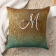 Holographic gold and sea green Glitter Monogram Throw Pillow can customiuzed the name
