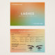 Customize with your service details, contact information, and social media. Ideal for eyelash businesses, this card allows you to create a personalized lash map and add important notes. Keep a detailed and organized record of each client for a tailored and efficient service