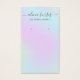 Modern earring holder card featuring a colourful holographic gradient in pastel pink, purple, blue and green. The front has your business name and tagline and the back has your contact information. These pretty and feminine earring display cards are perfect for a handmade jewellery business.