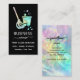 Elegant script calligraphy with holographic background for cleaning service calling card gives it a luxury touch. Add your name, email, and other detail. this card is fully customizable. #cleaningbusinesscard ##luxurycleaningservices #holographicbusinesscard