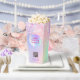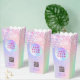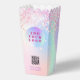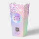 Holographic, pink purple background decorated with confetti. Personalize and add your business logo and a QR code to your website or a social media account.
