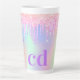 A trendy holographic background with unicorn and rainbow pastel colours in pink, purple, rose gold, mint green. Decorated with faux glitter drips in rose gold, pink and purple. Personalize and add your monogram initials. Bold purple coloured letters. A bit of everyday glam to brighten up your day!