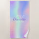Holographic pink purple monogram name beach towel