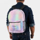A holographic, unicorn and rainbow coloured background in pink, purple and mint green. Decorated with confetti. Personalize and add your first name, monogram initials and full name.