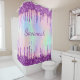 A trendy holographic coloured background with unicorn and rainbow pastel colours in pink, purple, rose gold, mint green. Decorated with faux glitter drips in purple, pink and rose gold. Personalize and add a name, written with a girly modern hand lettered style script. Purple coloured letters.