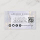 Holographic Purple Glitter Luxury Glam Iridescent QR Code Business Card. This design features a classy signature calligraphy script style font set against a beautiful modern iridescent sparkle lilac purple background. Perfect for a beauty salon, hair stylist, makeup artist, nail technician, lash tchnician or cosmetologist.