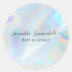 Cute and sparkly faux holographic background business stickers for both small business owners and large organizations. The design features a modern, script, typography, trendy fonts and simple but effective background. Perfect for a beautician or beauty salon owner, makeup artist, costume maker, hair stylist, or cosmetologist.