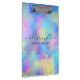 Brighten up your workspace with this stunning holographic opal clipboard, featuring a radiant sparkle and iridescent colours. Perfect for beauty professionals, students, or anyone who loves vibrant, eye-catching designs, this custom personalized clipboard is both practical and stylish. Add a touch of glam to your desk with this unique and colourful accessory.