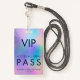 Custom Holographic VIP All Access Pass Event Badge that you can easily customize. Perfect for any event and corporate events. Completely repurpose this design template for other special occasions in your life by clicking the "Edit using Design Tool" nested under the "Personalize" button to change the background colour, fonts, and layout