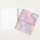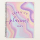Un planificateur moderne et personnalisé. Le design présente un arrière - plan holographique abstrait irisé violet, rose, bleu et jaune. Customisez avec votre propre texte, nom et année.