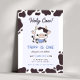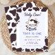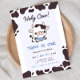 Get ready to celebrate with our Cow Birthday Invitation! Showcasing a baby cow on a blue background, this invitation is accented with cow spot borders. Customizable text allows you to personalize all the party details, making it the perfect choice for your little one's special day.