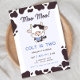 Get ready to celebrate with our Cow Birthday Invitation! Showcasing a baby cow on a blue background, this invitation is accented with cow spot borders. Customizable text allows you to personalize all the party details, making it the perfect choice for your little one's special day.