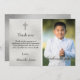 Thank your guests who joined your son for his first holy communion with this clean design. Customize with your personal details, special message, and picture. Click customize further to change the fonts and colours if desired.