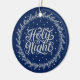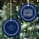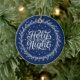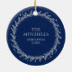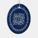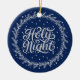 Holy Night Blue Silver Script Elegant Keepsake Ceramic Ornament
